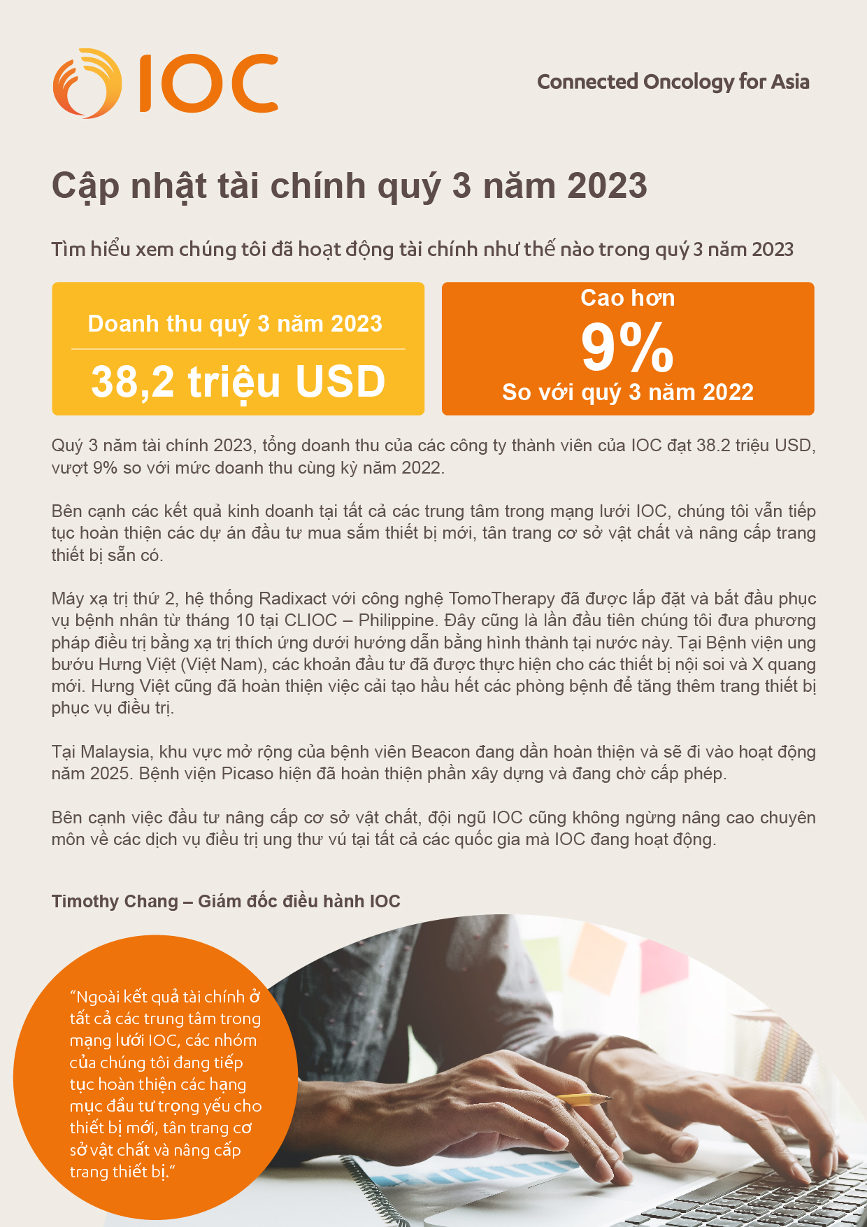 Nhìn lại 15 năm làm việc trong lĩnh vực điều trị ung thư, tôi có thể tự tin nói rằng đó không đơn thuần chỉ là công việc. Nó đã trở thành niềm đam mê của tôi và tôi cảm thấy đồng cảm mỗi khi gặp một người bệnh ung thư, tôi có thể góp phần thay đổi cuộc sống cũng như nâng đỡ tinh thần của họ thông qua việc chăm sóc tận tình, chu đáo. Tôi tin rằng những đồng nghiệp của tôi tại CLIOC cũng có chung niềm đam mê như vậy, để cùng biến nơi đây thành một trung tâm điều trị xuất sắc, mang đến hy vọng cho người bệnh.